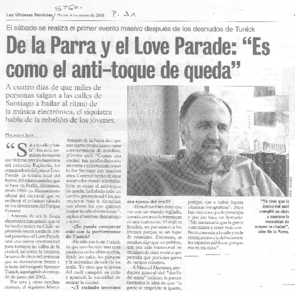 De la Parra y el Love Parade: "es como al anti- toque de queda" [entrevista] [artículo] Macarena Silva.