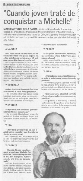 Marco Antonio de la Parra, obsesionado con las mujeres [entrevista] [artículo] : Claudia Cifuentes.