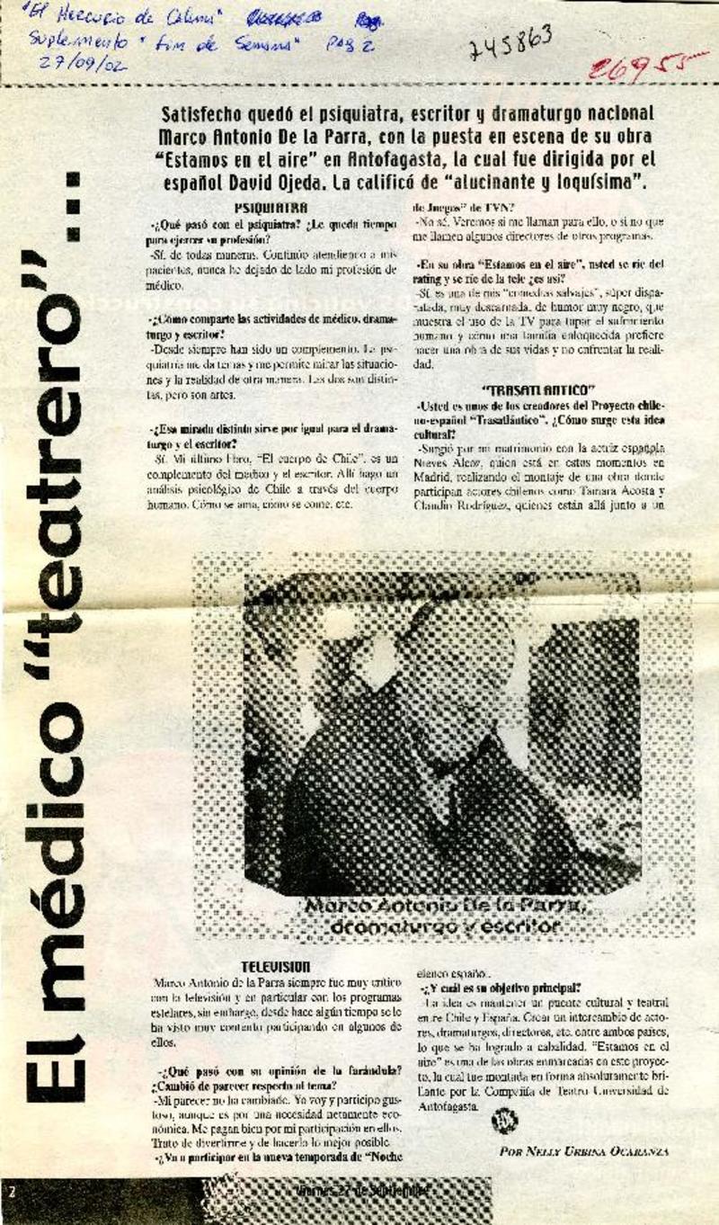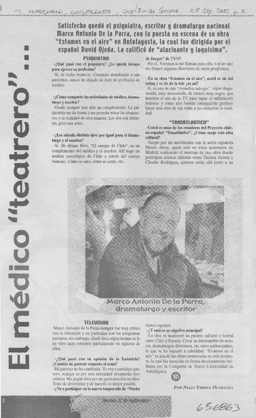 El médico "teatrero"... : [entrevista] [artículo] : Nelly Urbina Ocaranza.