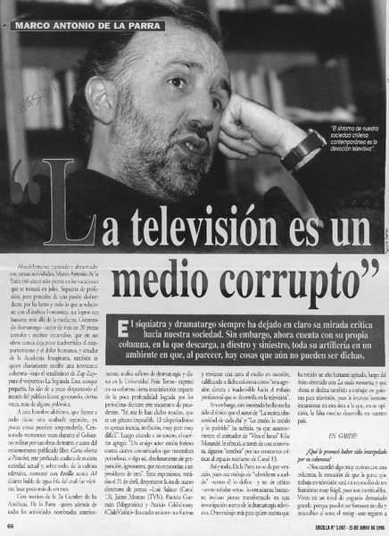 "La televisión es un medio corrupto" [entrevista] [artículo] : Milena Skoknic L.