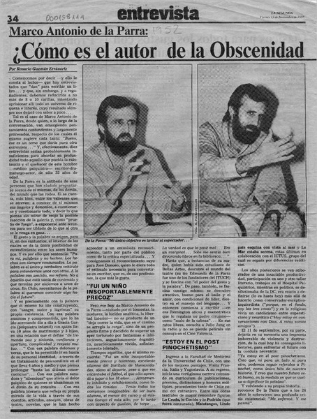 Autores chilenos - Entrevistas - Parra, Marco Antonio de la - La secreta obscenidad de cada día