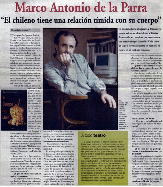Autores chilenos - Parra, Marco Antonio de la - Entrevista - Cuerpo de Chile
