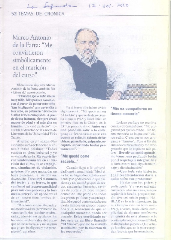 "Me convirtieron simbólicamente en el maricón del curso" (entrevista) [artículo].