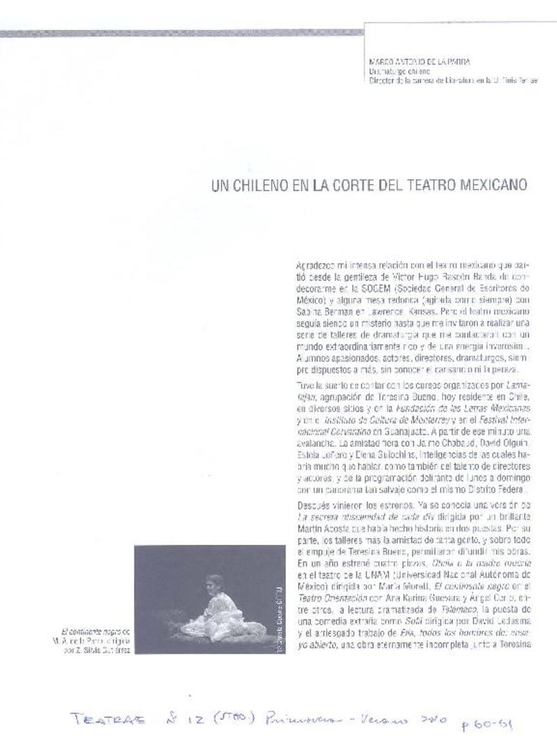 Un chilenos en la corte del teatro mexicano [artículo] Marco Antonio de la Parra.
