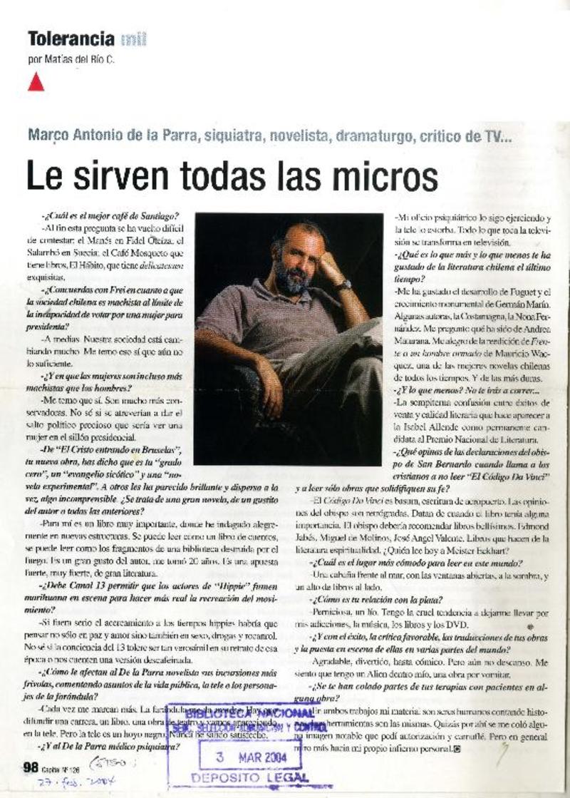 Parra, Marco Antonio de la - Entrevistas - Autores chilenos