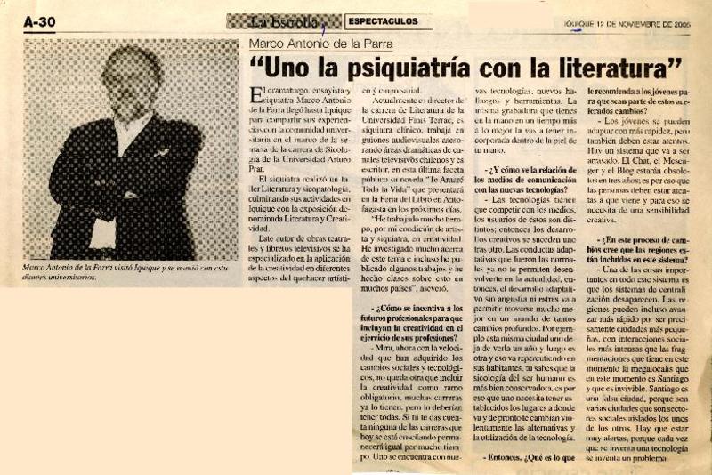 "Uno la psiquiatría con la literatura" (entrevista) [artículo].