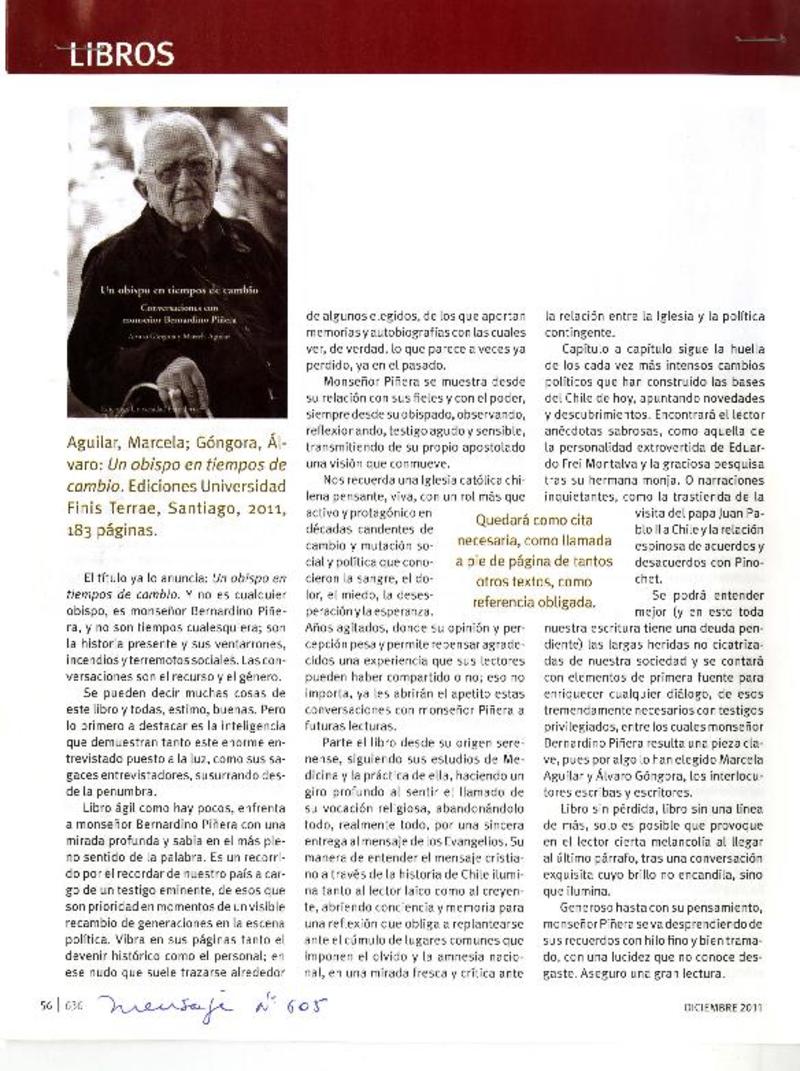 Autores chilenos - Aguilar, Marcela - Góngora, Alvaro - Obispo en tiempos de cambio