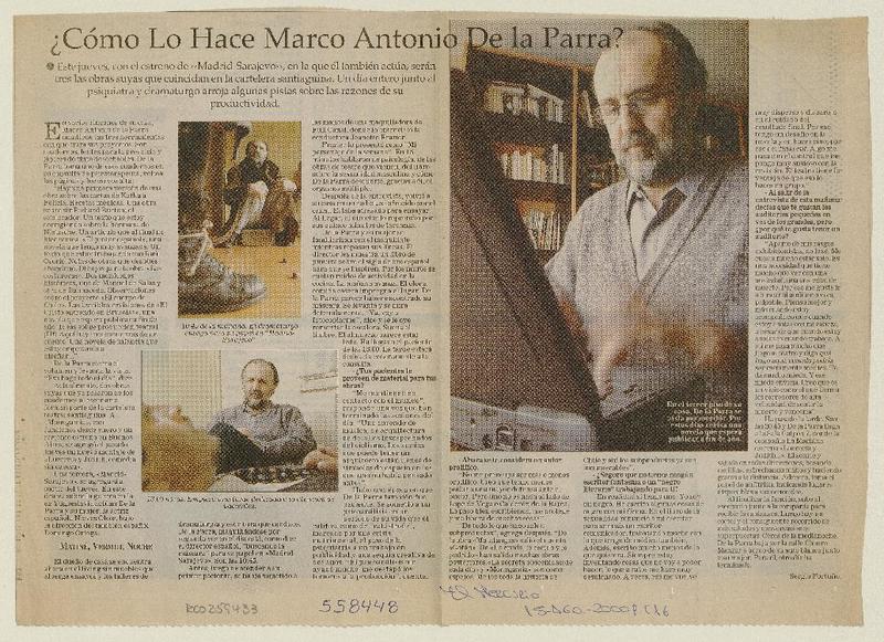 ¿Cómo lo hace Marco Antonio de la Parra? [entrevista] [artículo] : Sergio Fortuño.