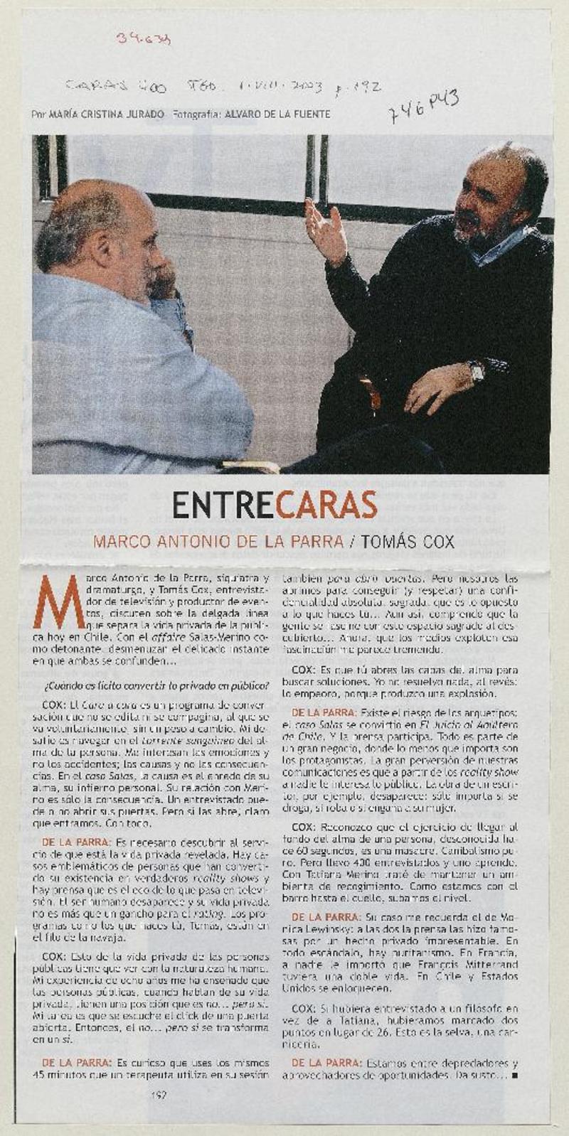 Autores chilenos - Entrevistas - Parra, Marco Antonio de la - Entrevista - Cox, Tomás