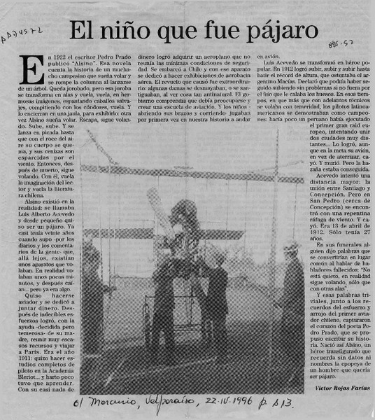 El niño que fue pájaro [artículo] Víctor Rojas Farías.