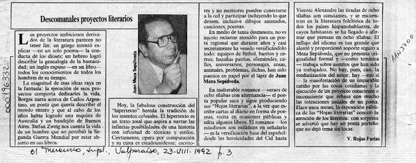 Descomunales proyectos literarios [artículo] V. Rojas Farías.
