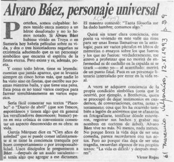 Alvaro Báez, personaje universal [artículo] Víctor Rojas.