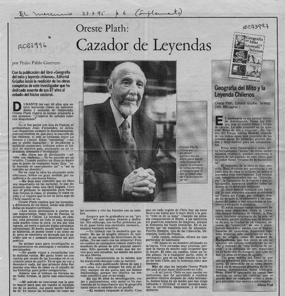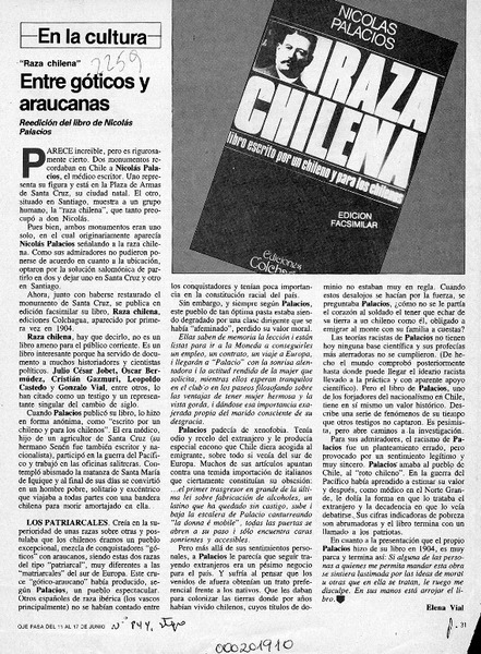 Geografía del mito y la leyenda chilenos [artículo] Elena Vial.