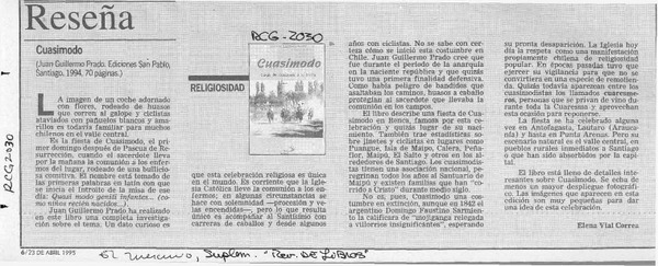 PRADO O., JUAN GUILLERMO - CUASIMODO, CARGA DE CABALLERIA A LO DIVINO