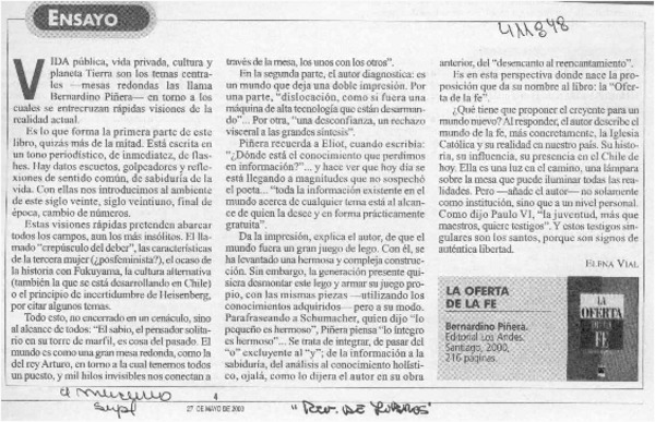 Autores chilenos - Piñera, Bernardino - Oferta de la fe
