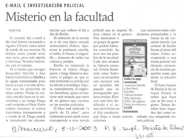 Emilia y la dama negra [artículo] Elena Vial Correa.