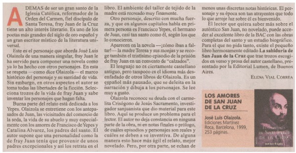 Los amores de San Juan de la Cruz [artículo] Elena Vial.