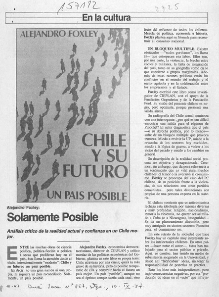 FOXLEY, ALEJANDRO - CHILE Y SU FUTURO