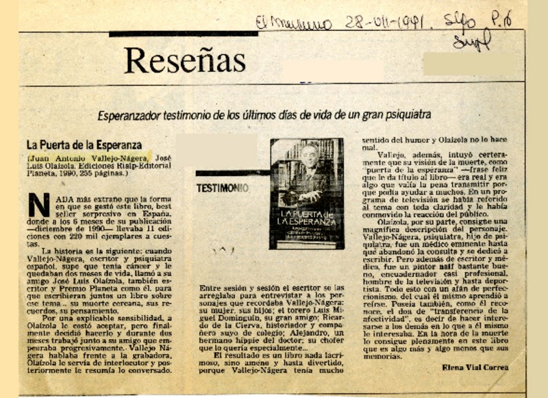 La puerta de la esperanza [artículo] Elena Vial Correa.