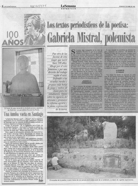 Los textos periodísticos de la poetisa, Gabriela Mistral, polemista [artículo] Andrea Bostelmann.