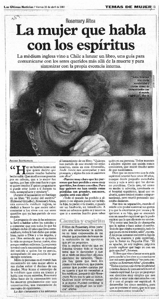 La Mujer que habla con los espíritus [artículo] Andrea Bostelmann.