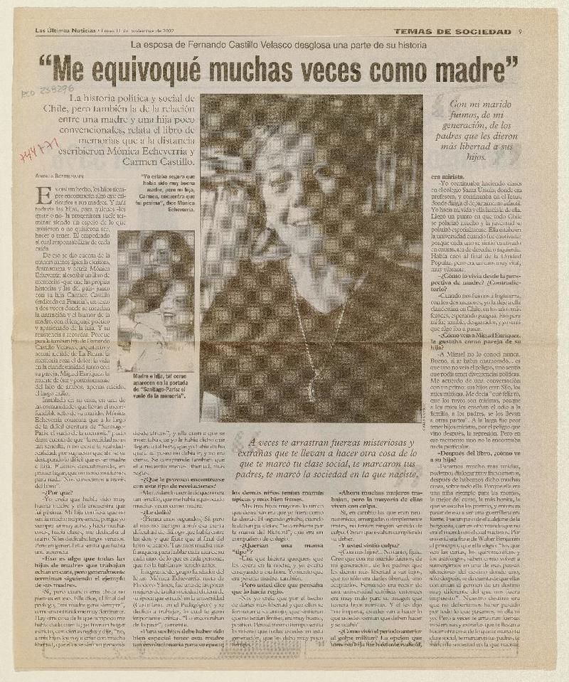 Me equivoqué muchas veces como madre" la esposa de Fernando Castillo Veslasco desglosa una parte de su historia [artículo] : Andrea Bostelmann.