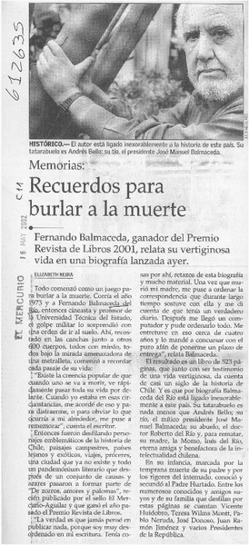 Recuerdos para burlar a la muerte [artículo] Elizabeth Neira.