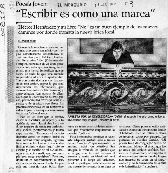 "Escribir es como una marea" [artículo] Elizabeth Neira