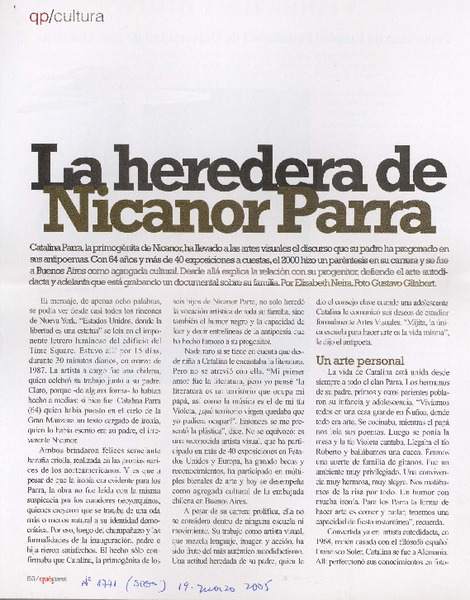 La heredera de Nicanor Parra [artículo] Elizabeth Neira.