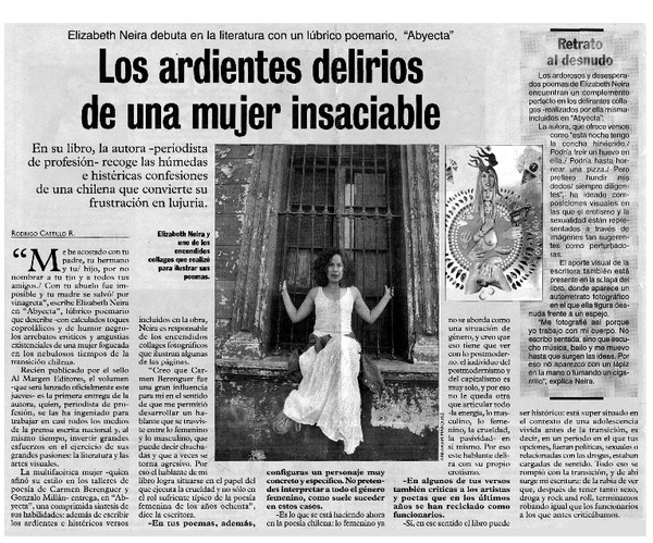 Los ardientes delirios de una mujer insaciable : [entrevista] [artículo] Rodrigo Castillo R.