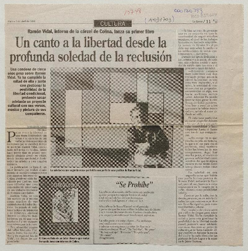 Un canto a la libertad desde la profunda soledad de la reclusión [artículo] Elizabeth Neira.