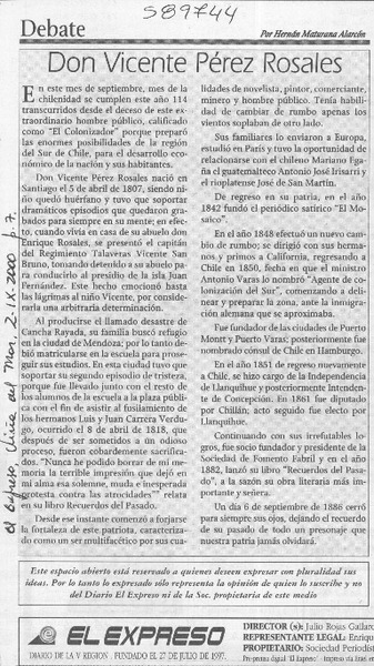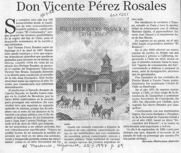 Don Vicente Pérez Rosales [artículo] Hernán Maturana Alarcón.