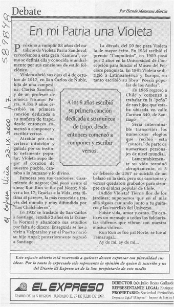 En mi patria una Violeta [artículo] Hernán Maturana Alarcón