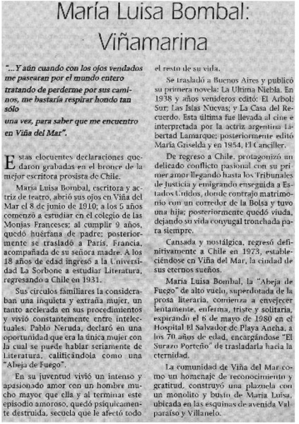 María Luisa Bombal, viñamarina [artículo] Hernán Maturana Alarcón