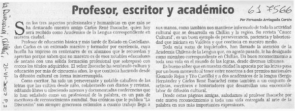 Profesor, escritor y académico [artículo] Fernando Arriagada Cortés