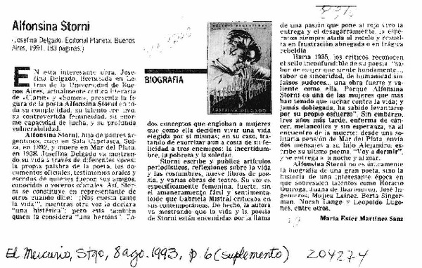 Alfonsina Storni [artículo] María Ester Martínez Sanz.