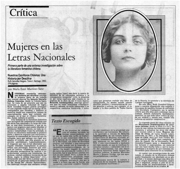 Mujeres en las letras nacionales [artículo] María Ester Martínez Sanz.