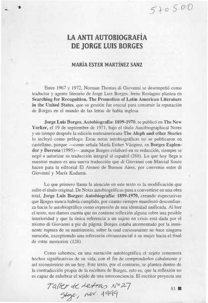 La anti autobiografía de Jorge Luis Borges [artículo] María Ester Martínez Sanz
