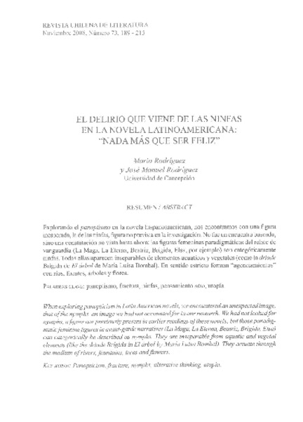 El delirio que viene de las ninfas en la novela latinoamericana [artículo] Mario Rodríguez y José Manuel Rodríguez.
