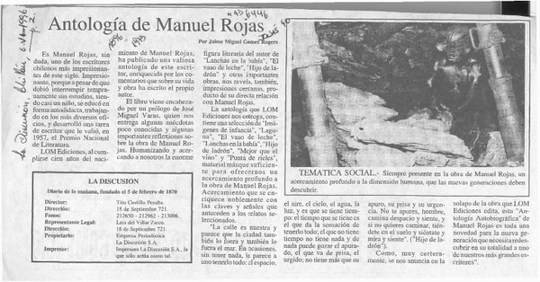 Antología de Manuel Rojas [artículo] Jaime Miguel Gómez Rogers.