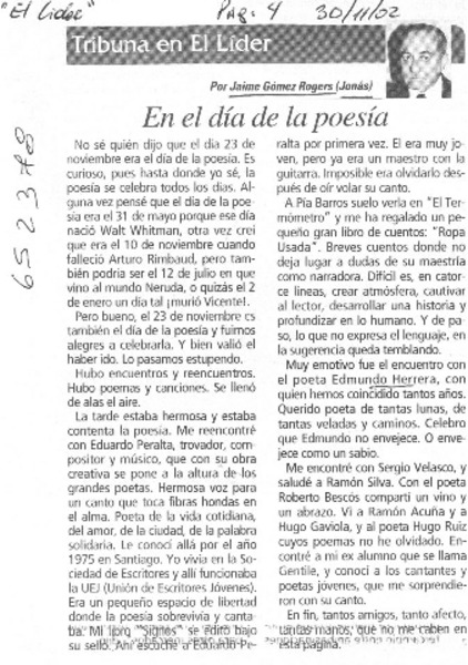 En el camino de la poesía [artículo] Jaime Miguel Gómez Rogers.