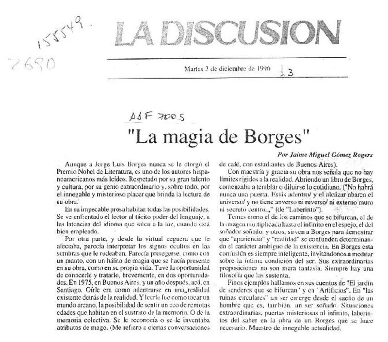 "La magia de Borges" [artículo] Jaime Miguel Gómez Rogers.