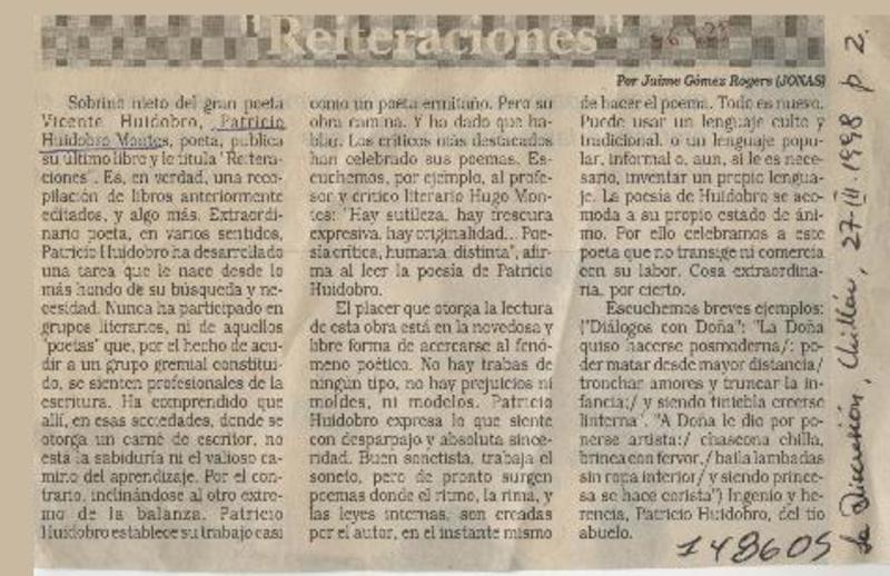 Autores chilenos - Huidobro, Patricio - Reiteraciones