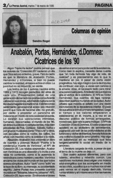 Anabalón, Portas, Hernández, D. Domnea, cicatrices de los '90 [artículo] Sandra Rogel.