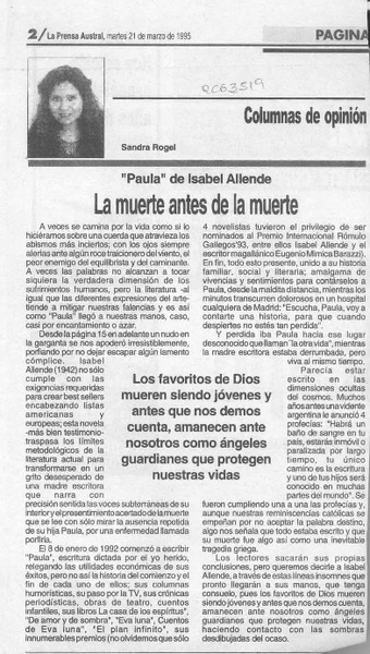 La muerte antes de la muerte [artículo] Sandra Rogel.