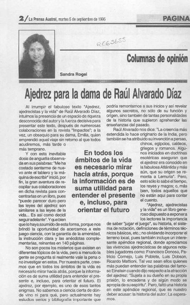 Ajedrez para la dama de Raúl Alvarado Díaz [artículo] Sandra Rogel.