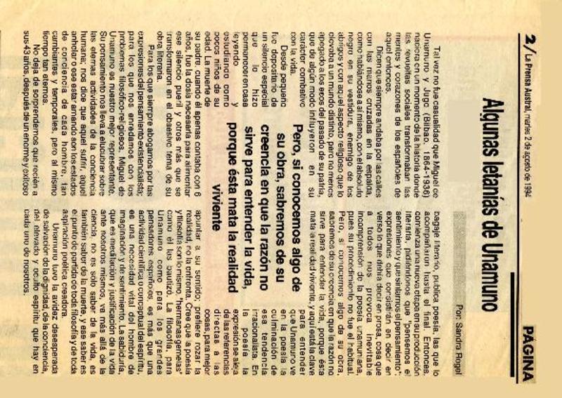 Algunas letanías de Unamuno [artículo] Sandra Rogel.