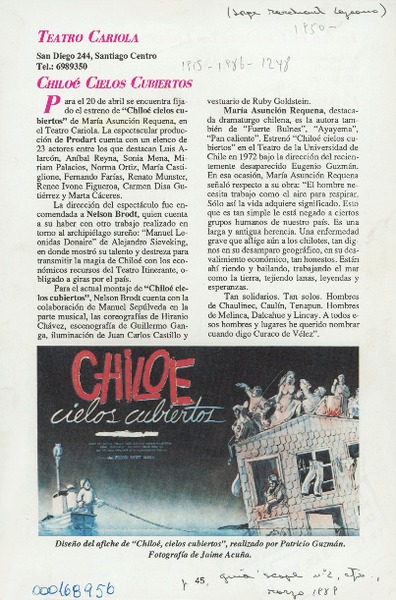 Dos alegres comadres elevan calidad de espectáculos chilenos [artículo] Jorge Marchant.