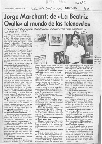 Jorge Marchant, de "La Beatriz Ovalle" al mundo de las telenovelas [entrevista] [artículo]