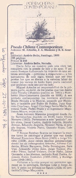"Poesía chilena contemporánea" [artículo] Jorge Marchant.